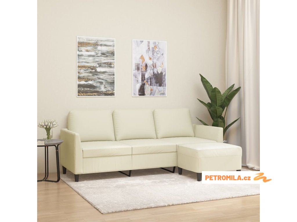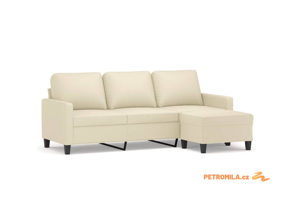 3místná pohovka s podnožkou krémová 180 cm umělá kůže