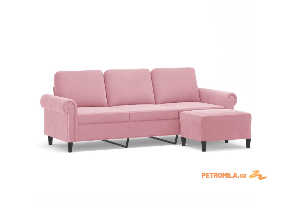 3místná pohovka s podnožkou růžová 180 cm samet