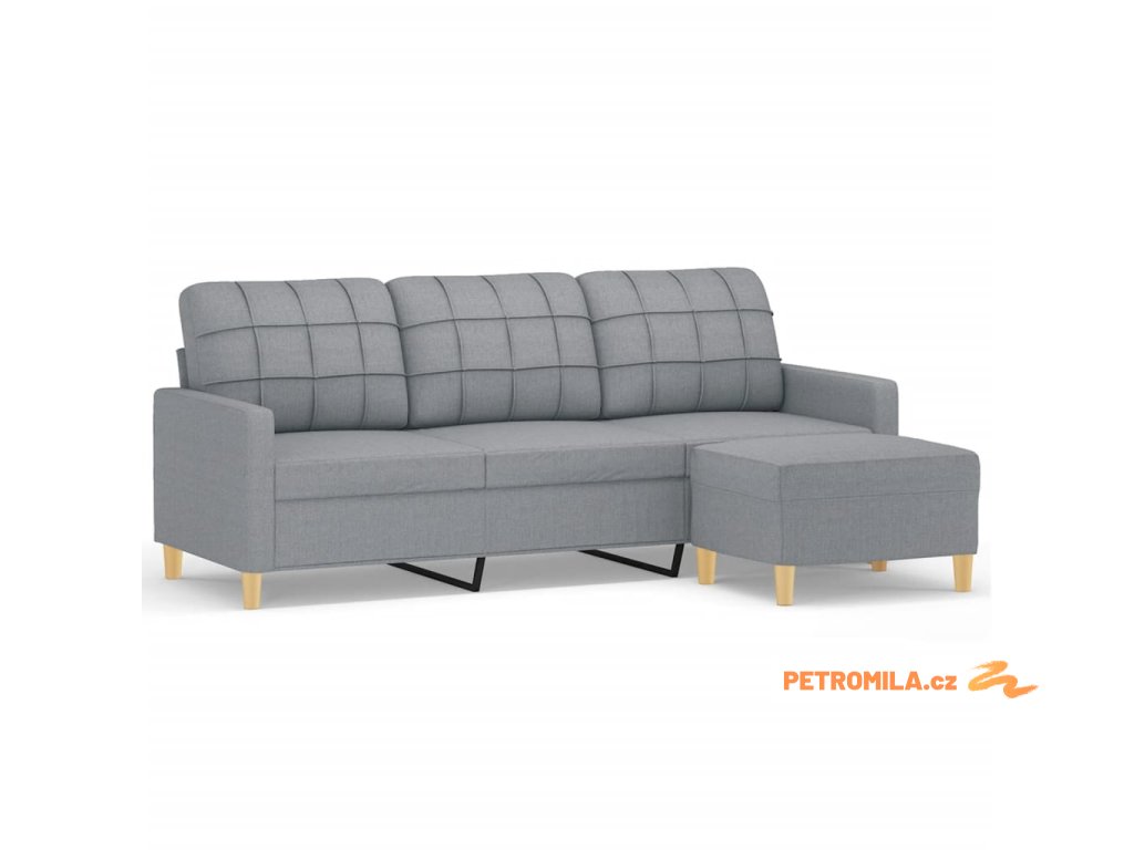 3místná pohovka s podnožkou světle šedá 180 cm textil