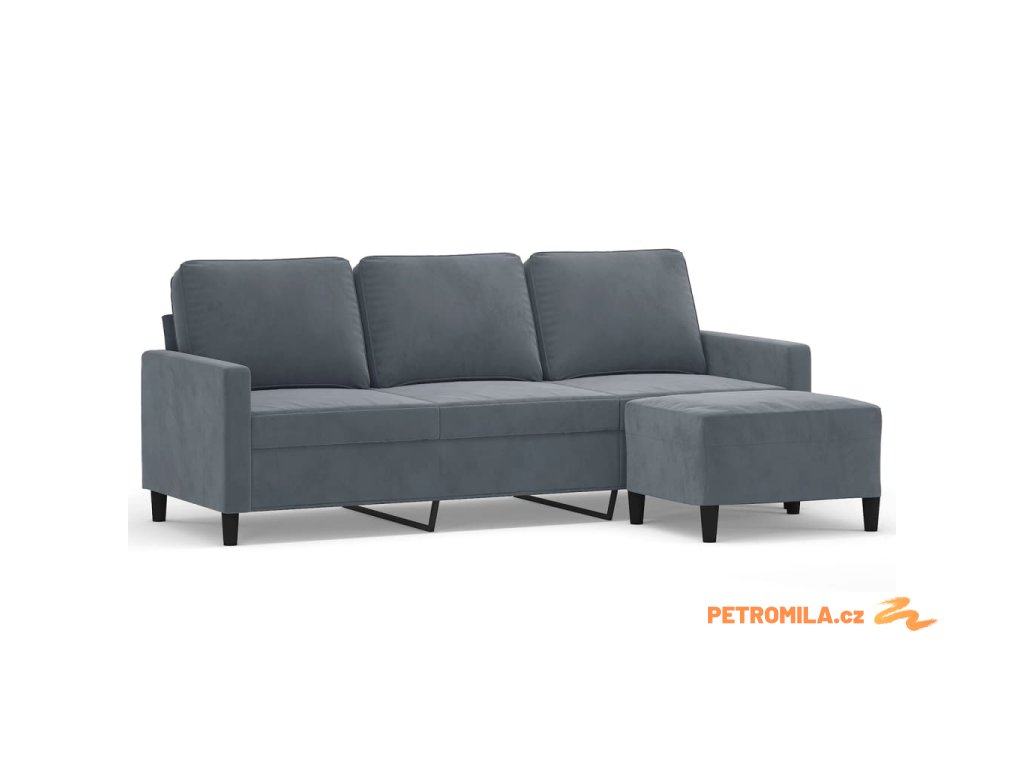 3místná pohovka s podnožkou tmavě šedá 180 cm samet