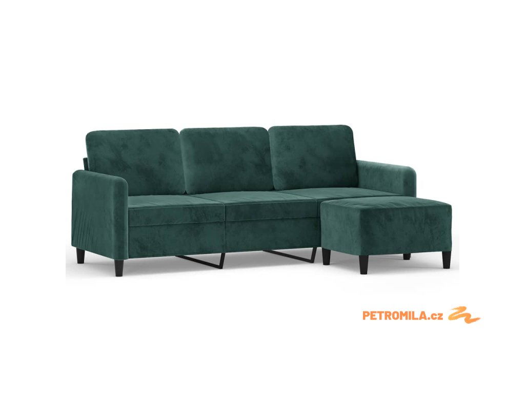 3místná pohovka s podnožkou tmavě zelená 180 cm samet