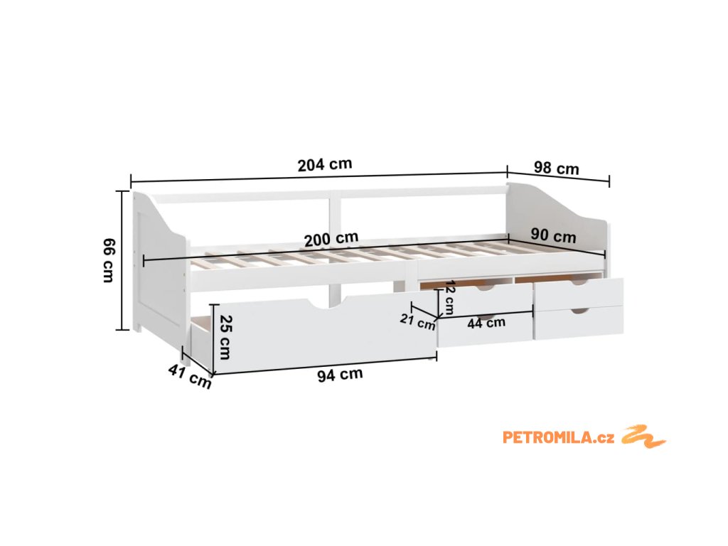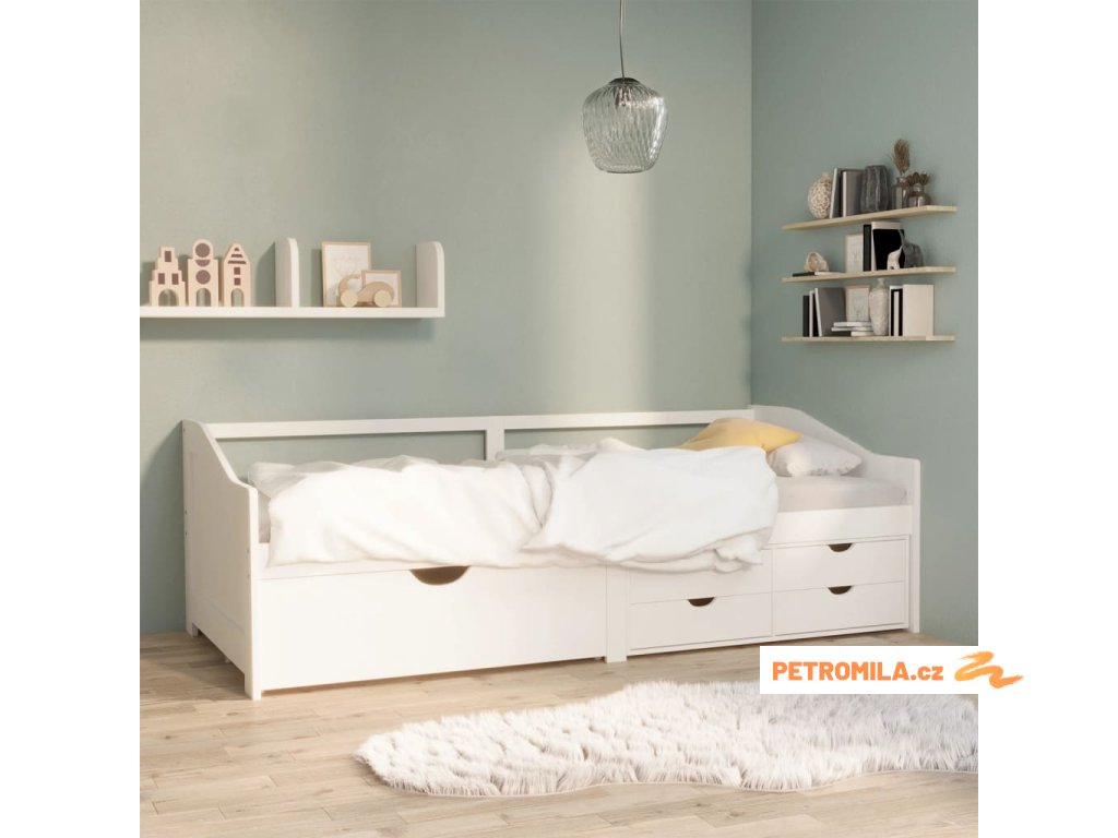 3místná válenda se zásuvkami bílá masivní borovice 90 x 200 cm