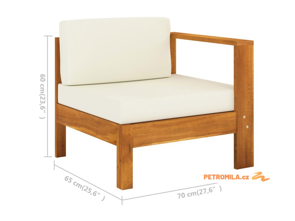 Zahradní pohovka je pečlivě vyrobená z masivního akáciového dřeva s teakovým vzhledem. Je robustní, má dlouhou životností a je vhodná pro venkovní použití. Silné polstrované podušky na sedák a opěradlo poskytují extra pohodlí pro váš odpočinek. Povrch napuštěný olejem se snadno čistí vlhkým hadříkem.