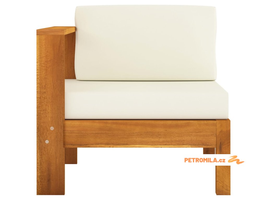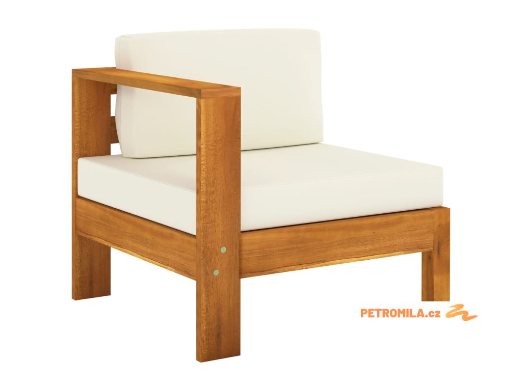 - Materiál: masivní akáciové dřevo s olejovou povrchovou úpravou, textil (100% polyester)