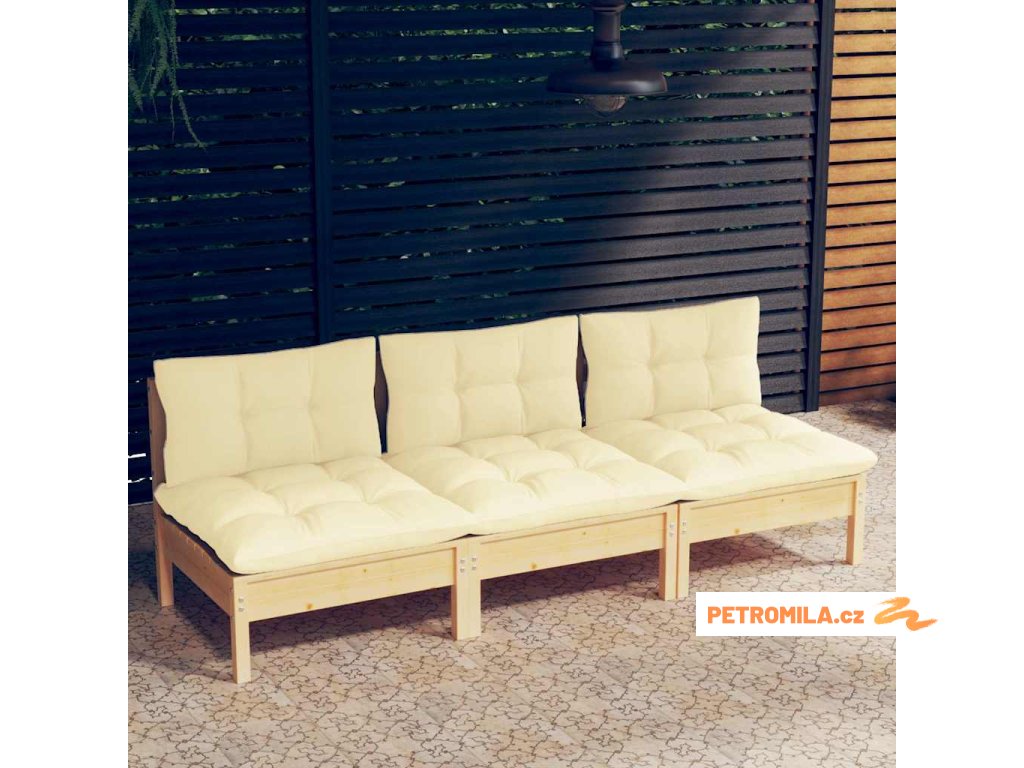 3místná zahradní pohovka s krémovými poduškami masivní borovice