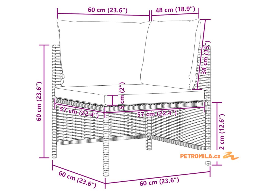 - Rozměry středové pohovky: 54 x 60 x 60 cm (Š x H x V)