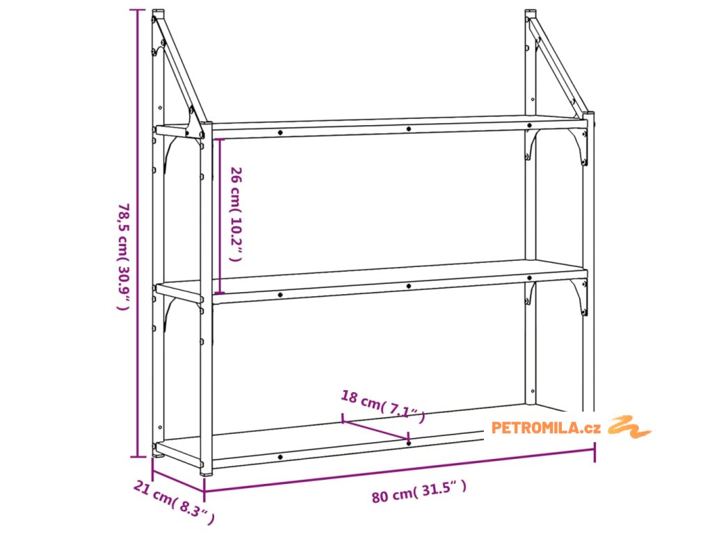 3patrová nástěnná police šedá sonoma 80 x 21 x 78,5 cm kompozit