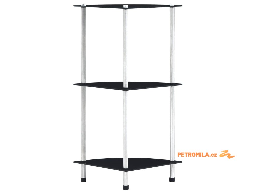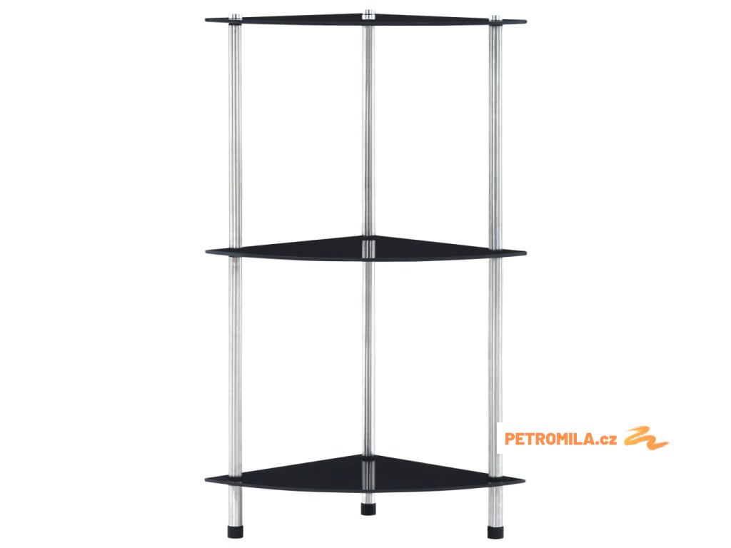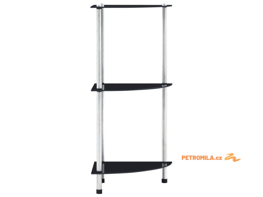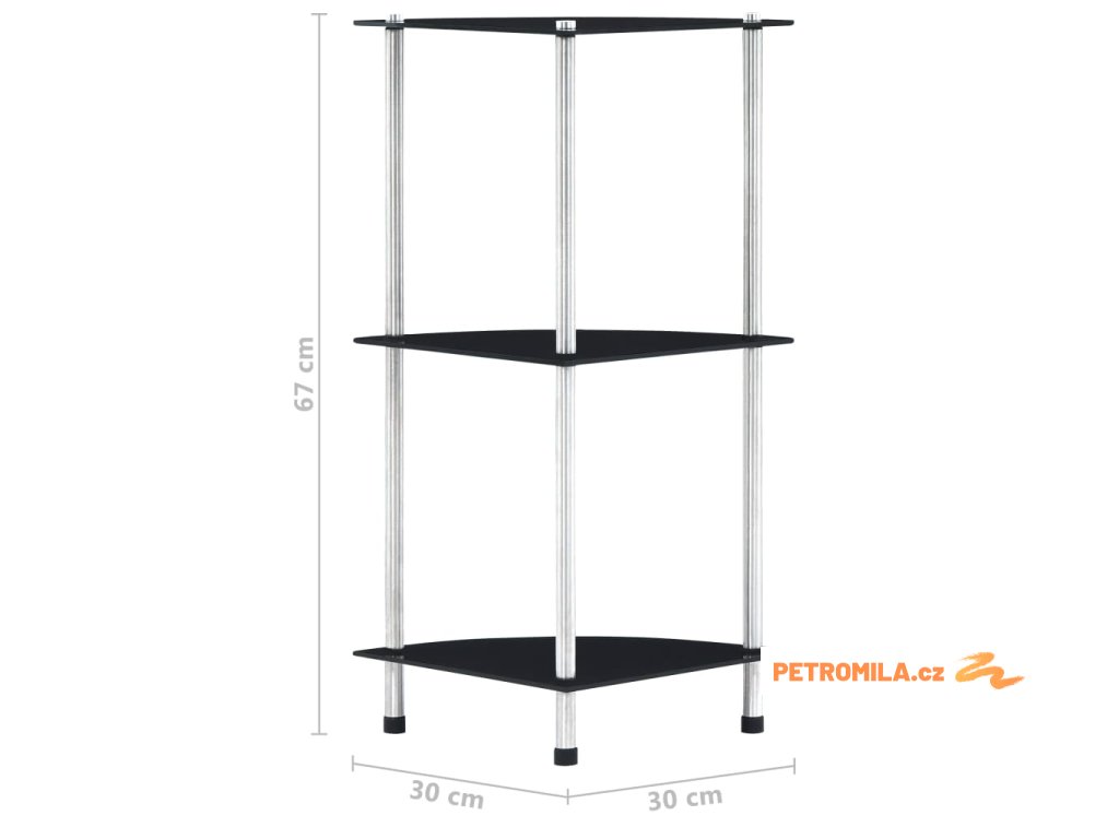 3patrová police černá 30 × 30 × 67 cm tvrzené sklo