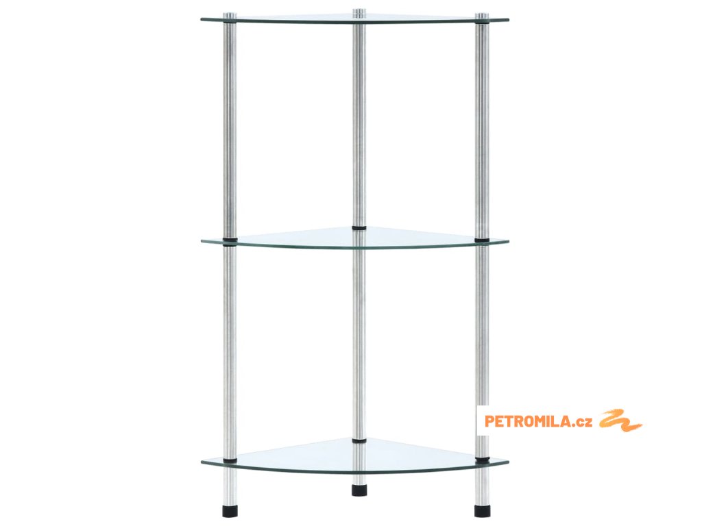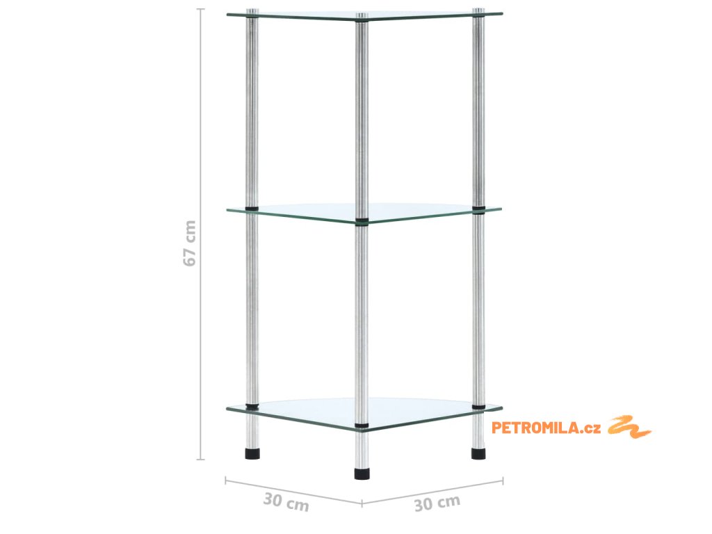 3patrová police průhledná 30 × 30 × 67 cm tvrzené sklo