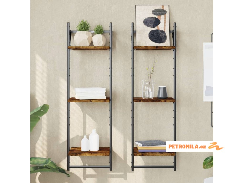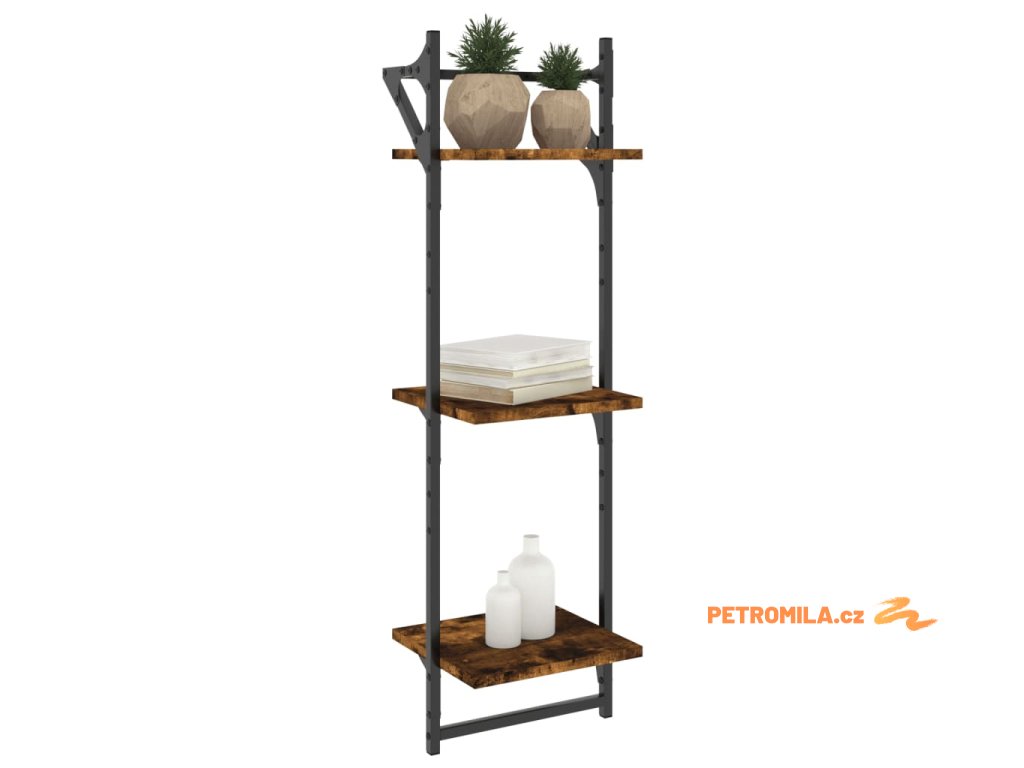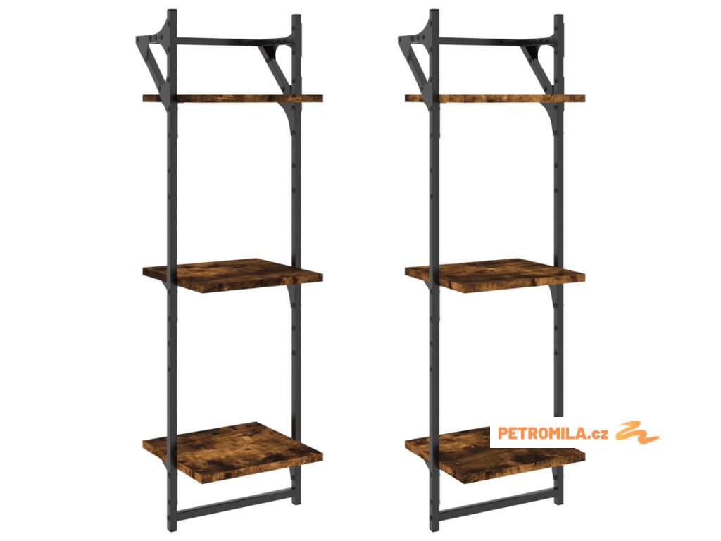 3patrové nástěnné police s tyčemi 2 ks kouřový dub 30x25x100 cm