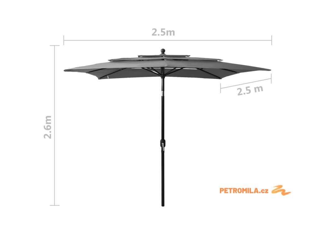 3stupňový zahradní slunečník hliníková tyč antracit 2,5 x 2,5 m