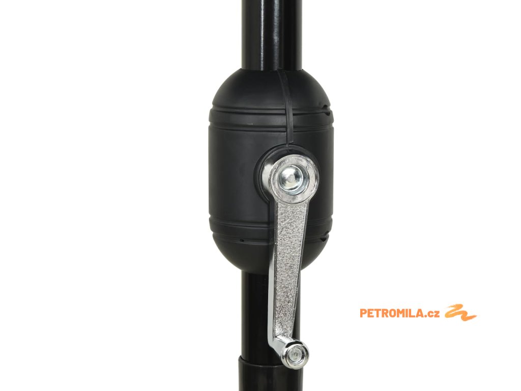 Zahradní slunečník je vyrobený z polyesteru, který nebledne a skvěle odolává UV záření, poskytne vám tedy optimální ochranu proti slunci. Stabilitu zajišťují práškově lakovaná hliníková tyč a žebra. Slunečník je vybavený klikovým mechanismem a funkcí naklápění, je skládací a přenosný. Můžete ho zasadit do svého stávajícího stojanu nebo doprostřed stolů s otvorem na slunečník.