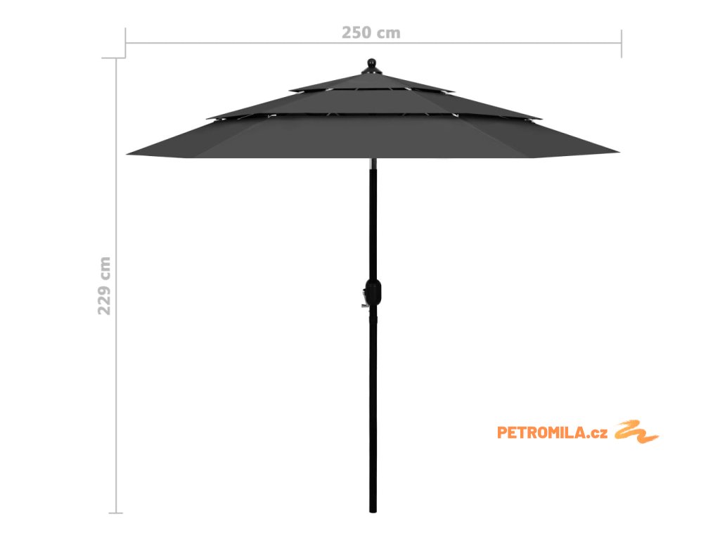 3stupňový zahradní slunečník s hliníkovou tyčí antracit 2,5 m