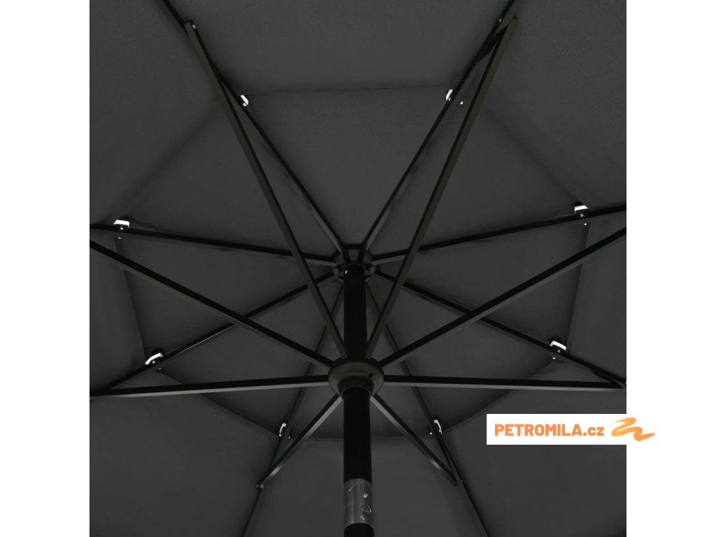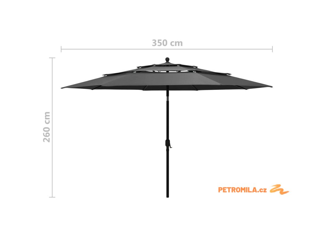 3stupňový zahradní slunečník s hliníkovou tyčí antracit 3,5 m