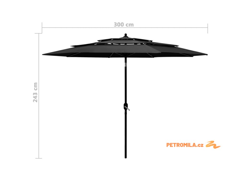 3stupňový zahradní slunečník s hliníkovou tyčí antracitový 3 m