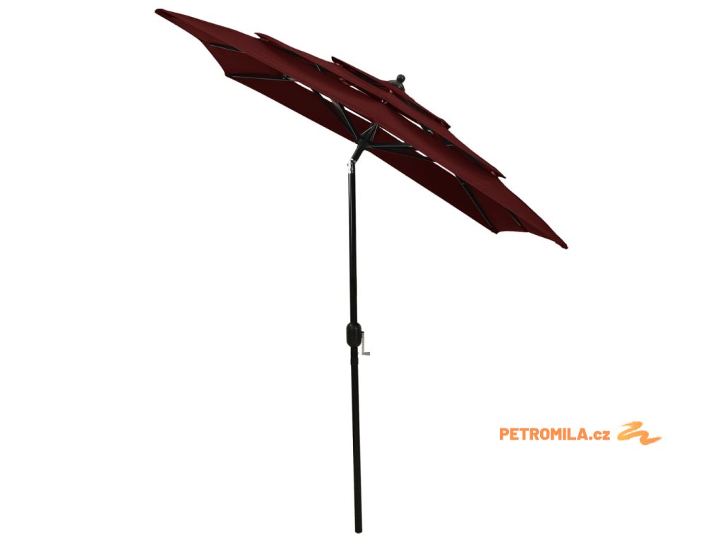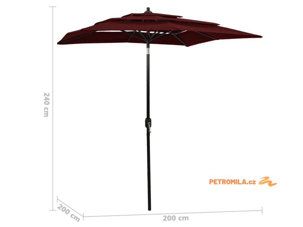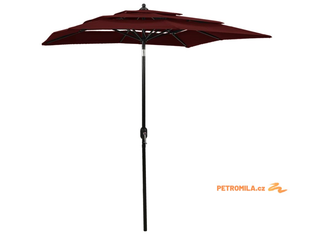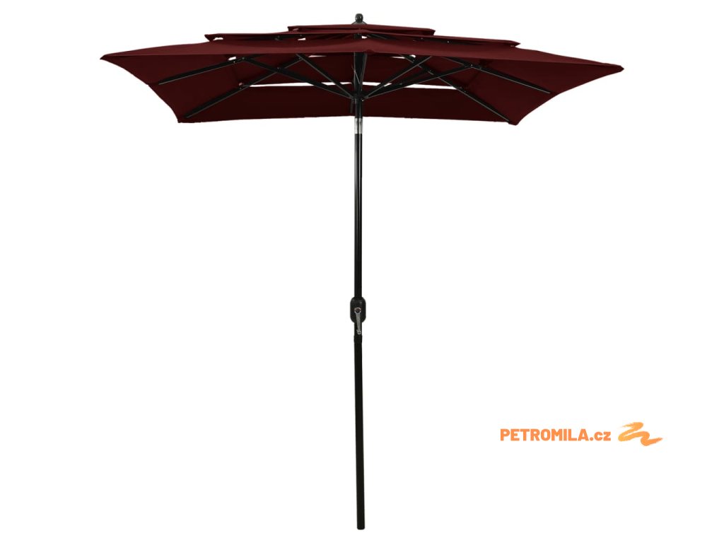 3stupňový zahradní slunečník s hliníkovou tyčí bordó 2 x 2 m