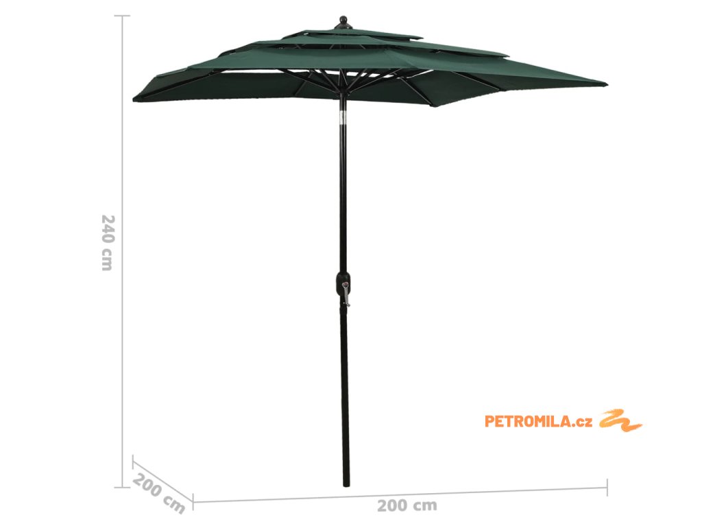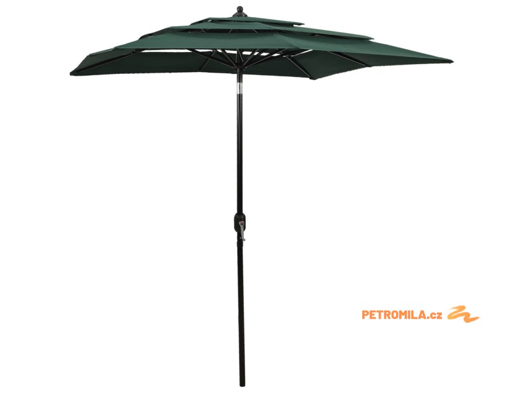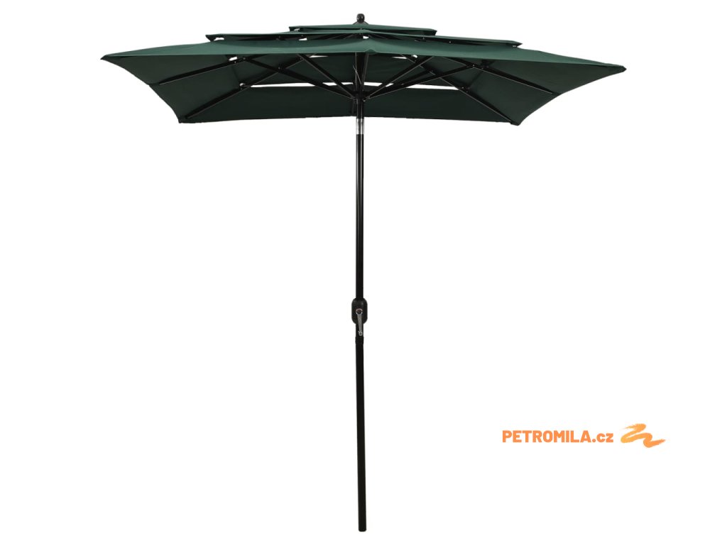 3stupňový zahradní slunečník s hliníkovou tyčí zelený 2 x 2 m