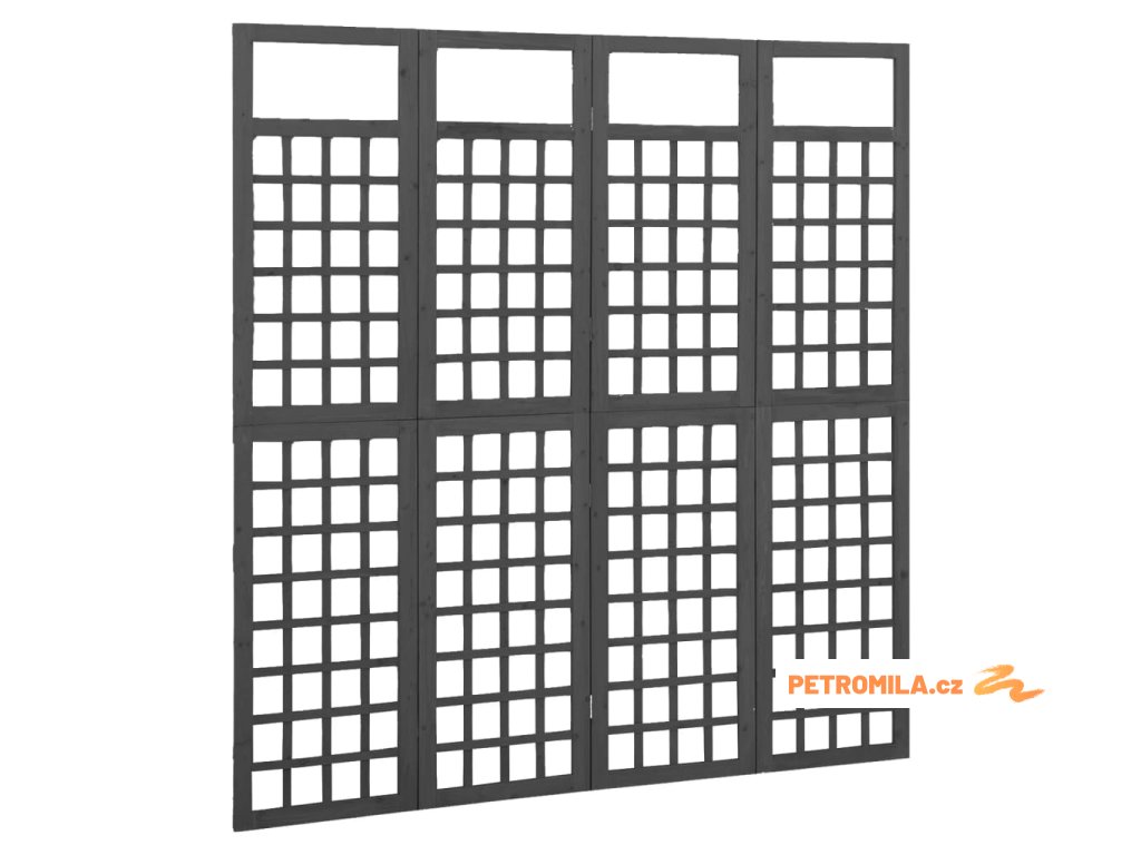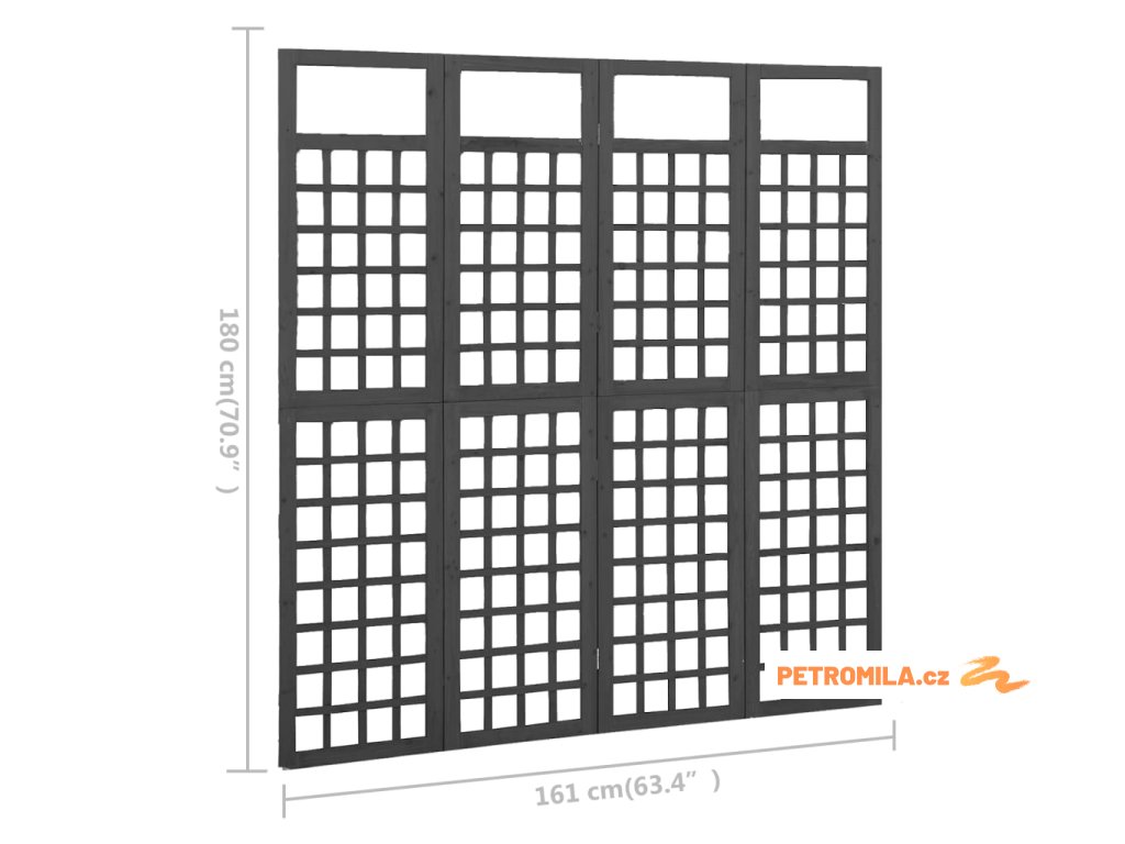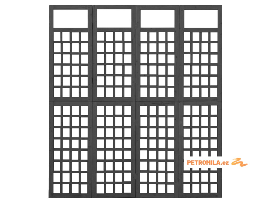 4dílná dělicí stěna / treláž masivní jedle černá 161 x 180 cm