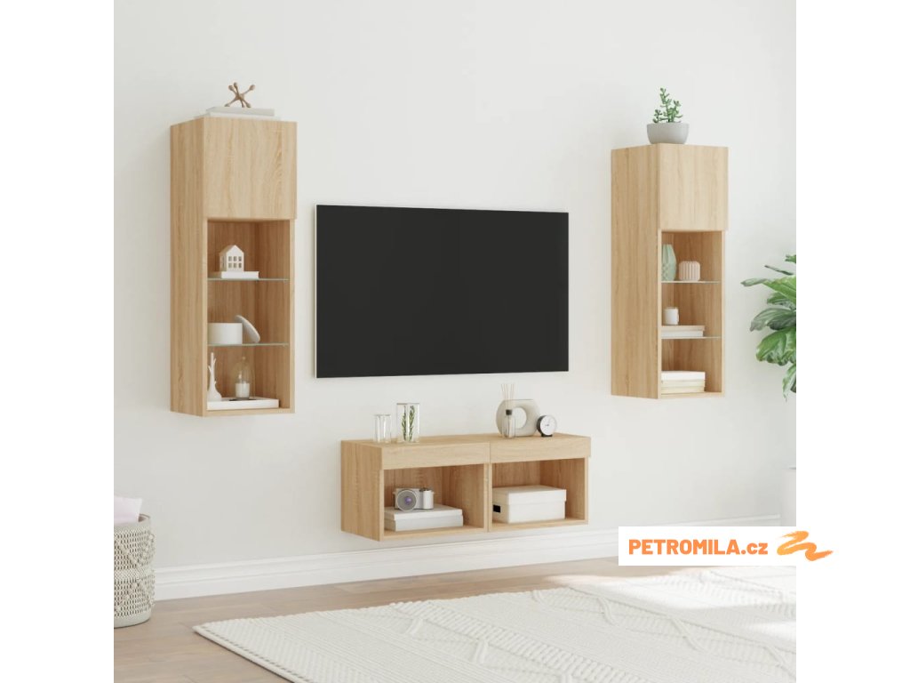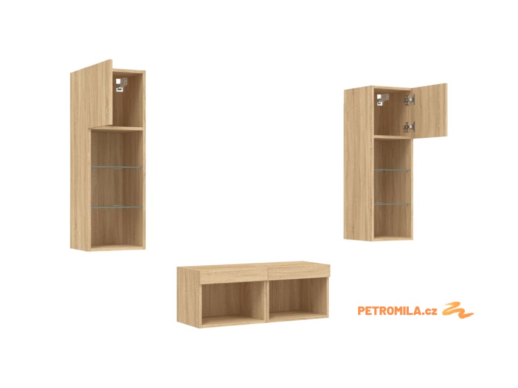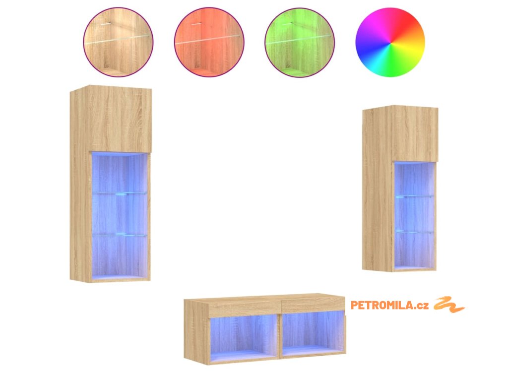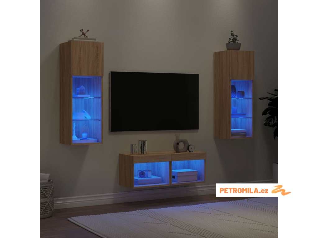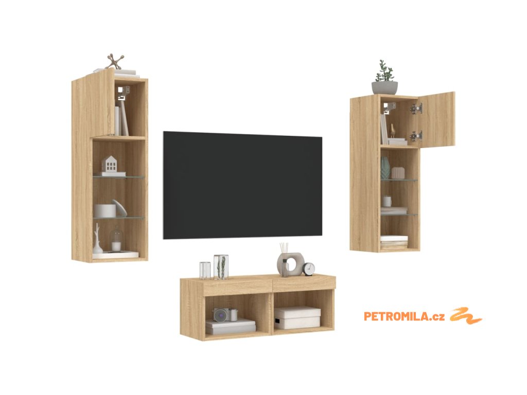 4dílná obývací stěna s LED osvětlením dub sonoma