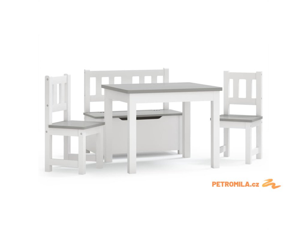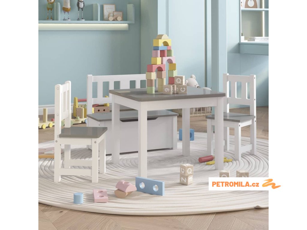 4dílná sada dětského stolu a židlí bílá a šedá MDF