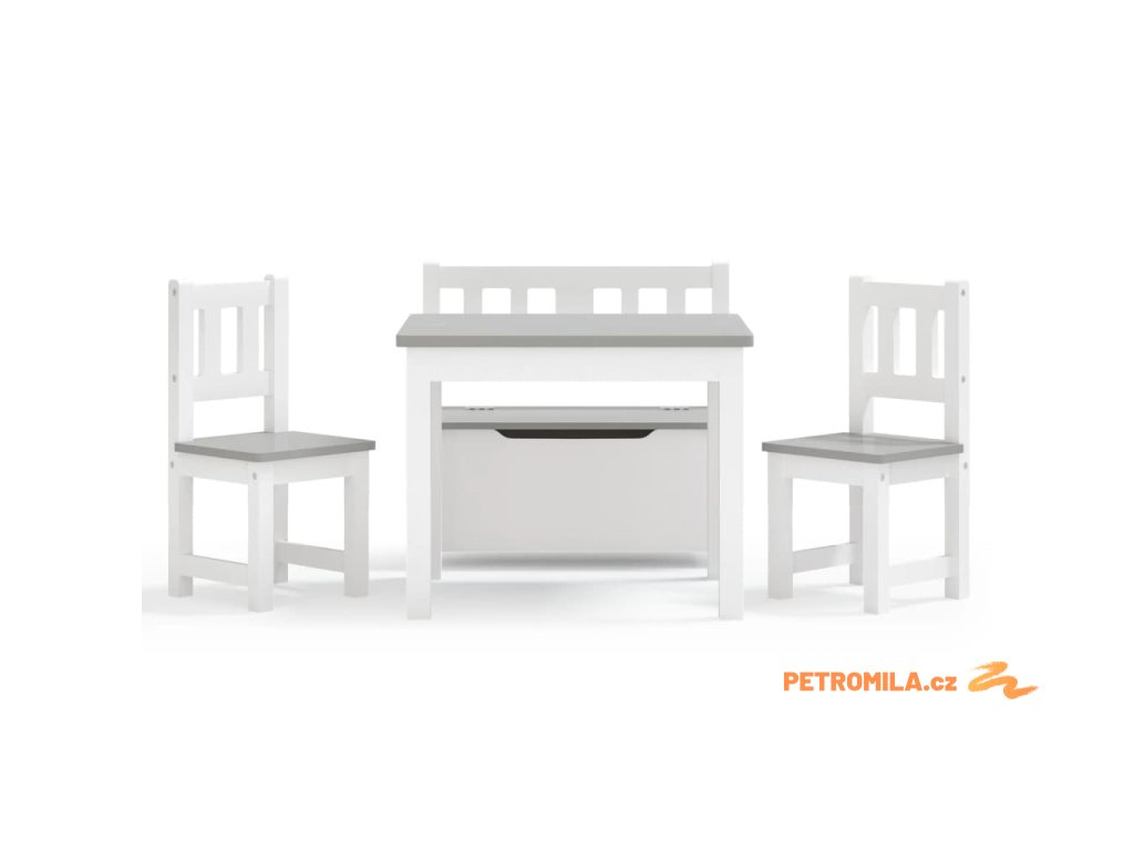 Tato sada stolu a židlí je vyrobena z odolné MDF, takže se snadno čistí a udržuje. Stolek se hodí nejen ke čtení a psaní, ale i ke skládání puzzle, hraní deskových her, dělání různých výtvarných prací nebo třeba k malé večeři. Lavice je dokonalou kombinací místa k sezení a úložného prostoru. Integrovaná úložná truhla s víkem je ideální pro přehledné uschování hraček a dalších věcí. Hrany a rohy stolu a židlí jsou z důvodu bezpečnosti zaoblené. Nábytek se skvěle hodí domů, do školy, do školky a na spoustu dalších míst.