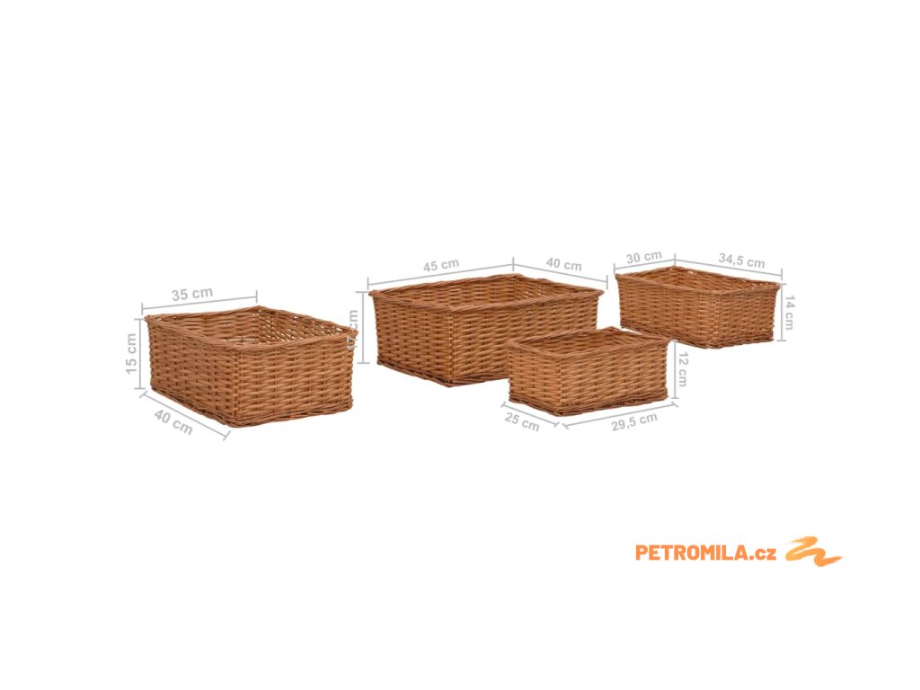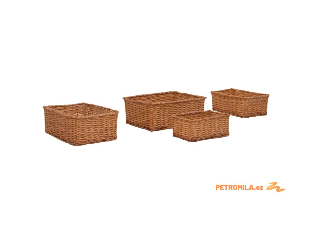Úložné koše jsou vyrobené z vrbového proutí, jsou tedy robustní a odolné. Obdélníkové boxy jsou perfektní pro všestranné každodenní organizování a největší koš vám poslouží třeba jako prostorný koš na prádlo. Atraktivní proutěný styl dodává této sadě přírodní kouzlo. Vzhledem k prostorově úspornému provedení je můžete naskládat do největšího koše, když se nepoužívají.