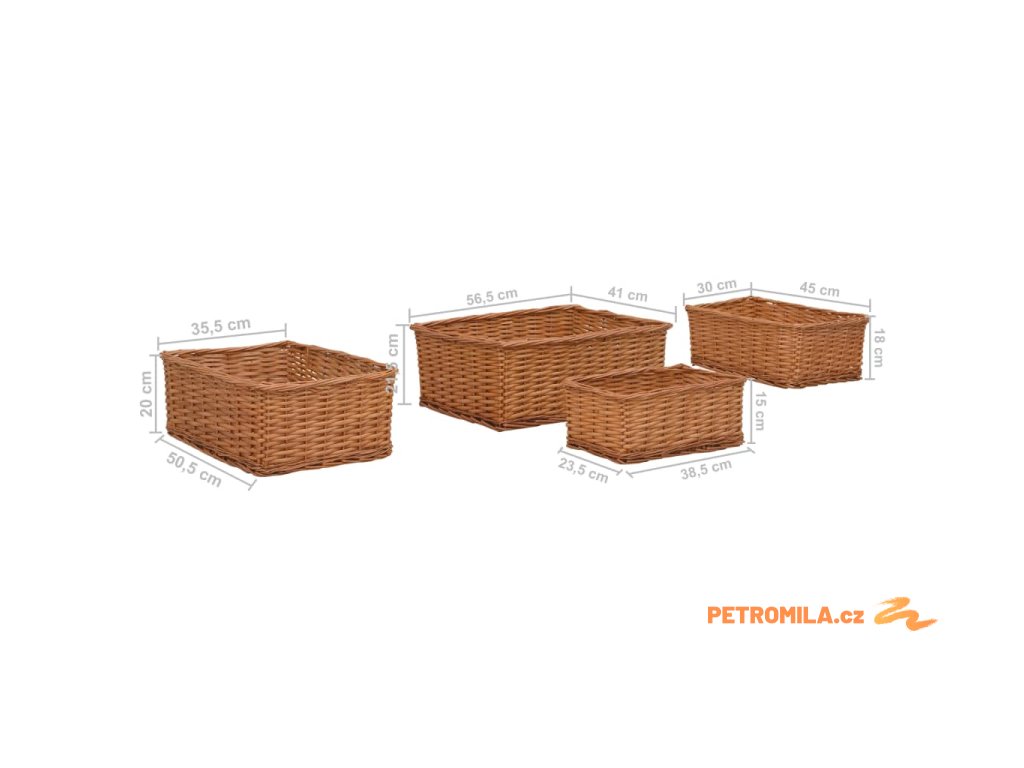 4dílná sada košíků hnědá vrba
