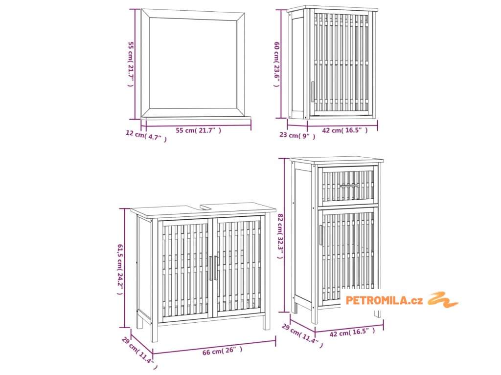 - Rozměry stojací skříňky: 42 x 29 x 82 cm (Š x H x V)