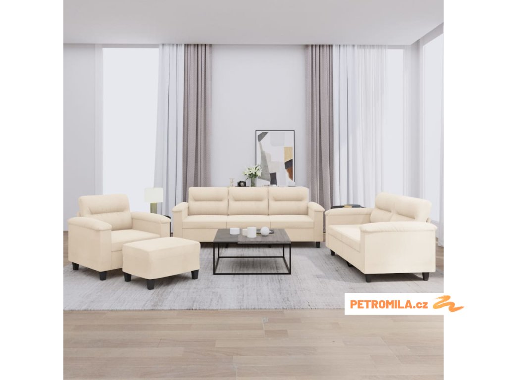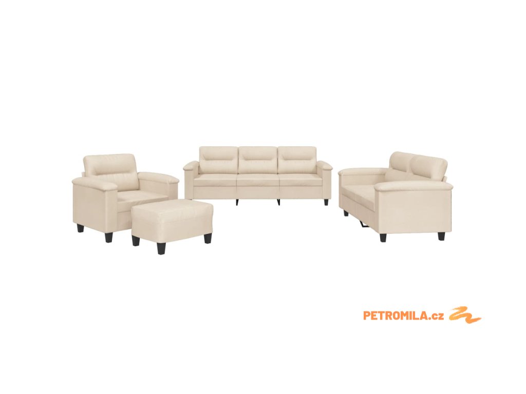 4dílná sedací souprava s poduškami béžová tkanina z mikrovlákna