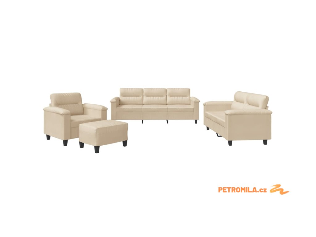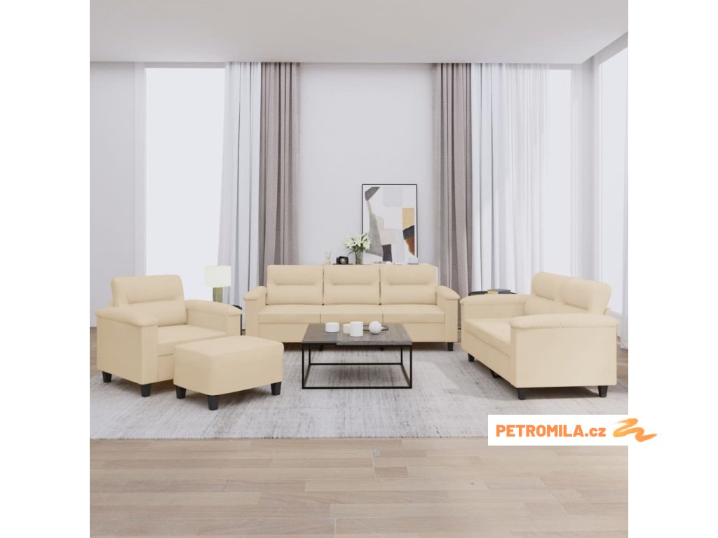 4dílná sedací souprava s poduškami krémová mikrovlákno