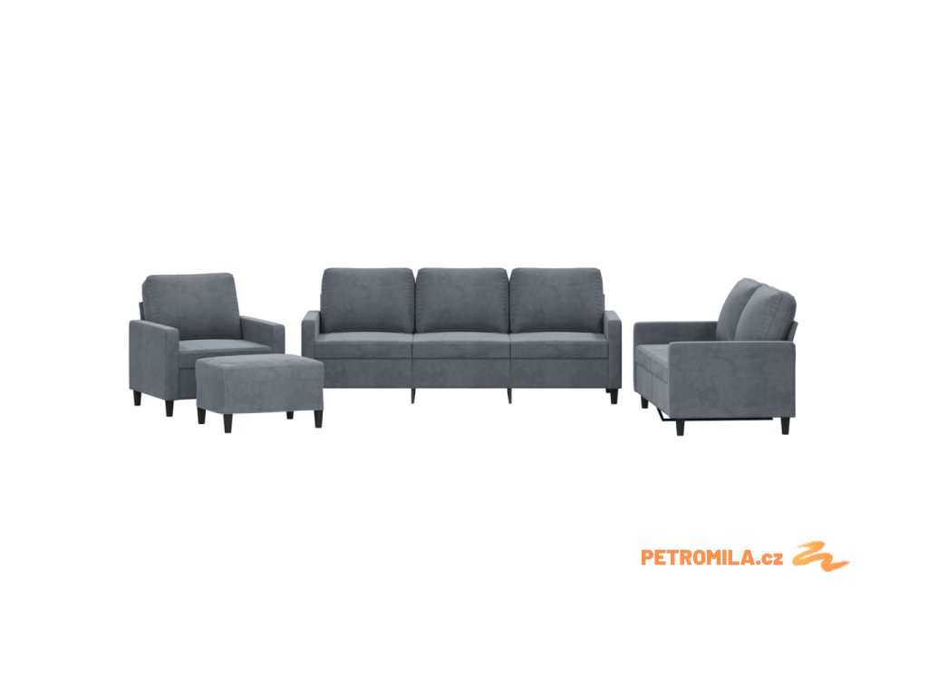 4dílná sedací souprava s poduškami tmavě šedá samet