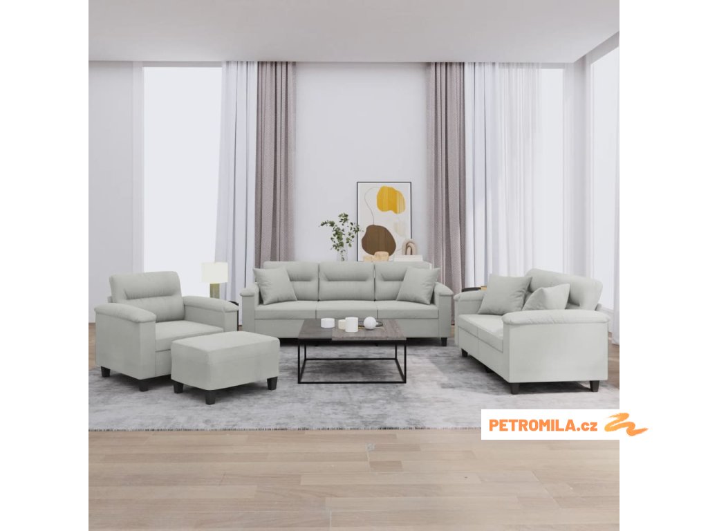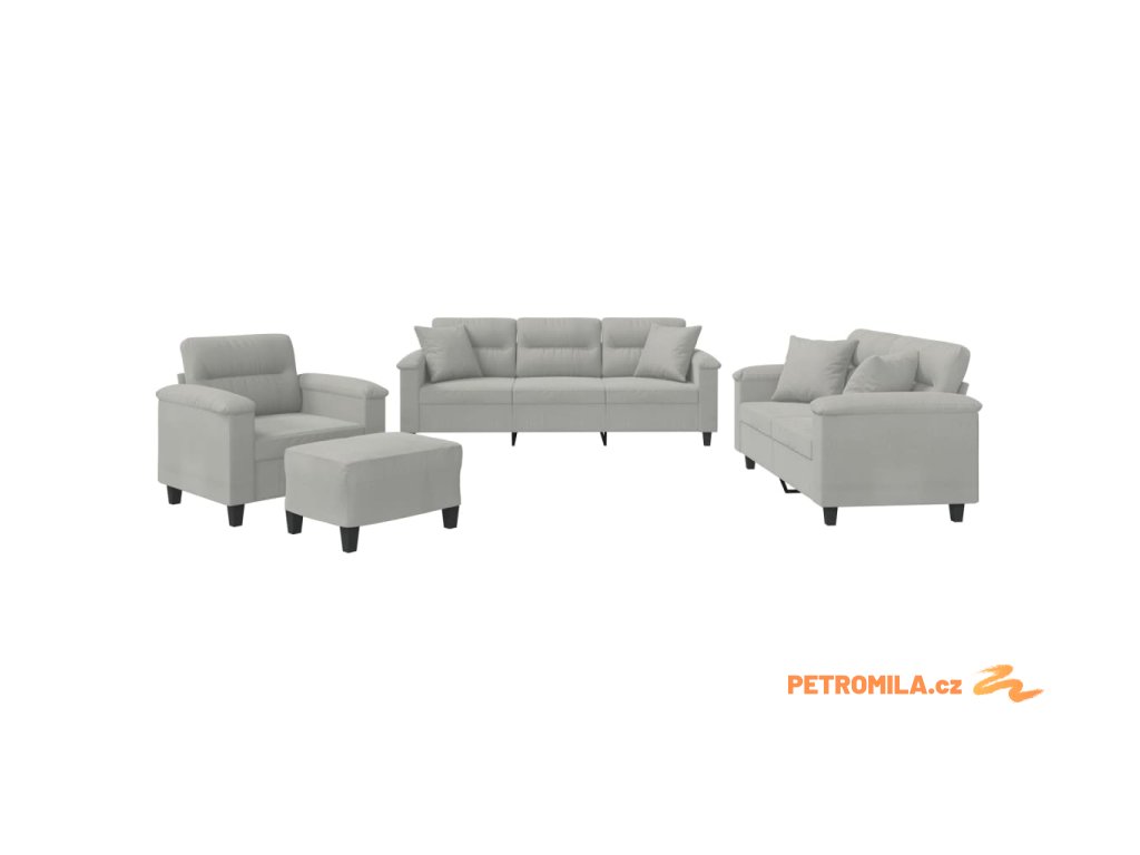 4dílná sedací souprava s polštáři světle šedá mikrovlákno