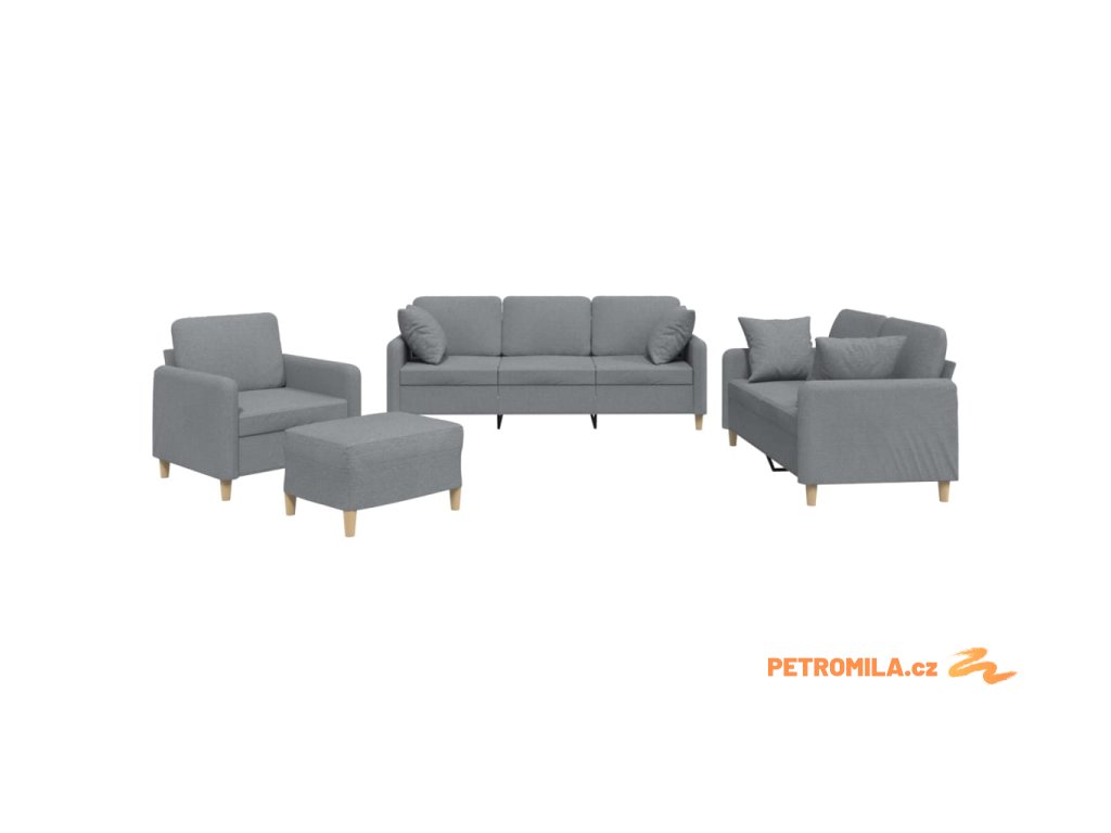 4dílná sedací souprava s polštáři světle šedá textil