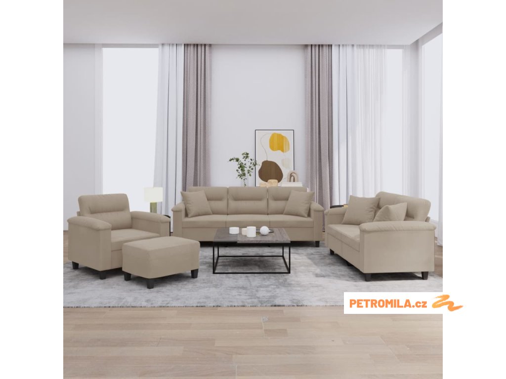 4dílná sedací souprava s polštáři taupe tkanina z mikrovlákna