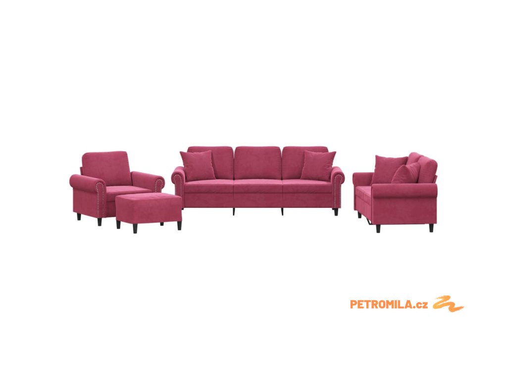 4dílná sedací souprava s polštáři vínová samet