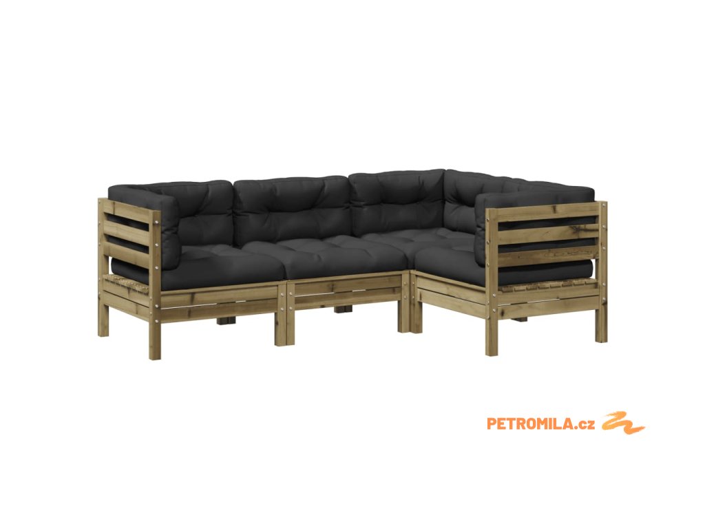 4dílná zahradní sedací souprava a podušky impregnovaná borovice