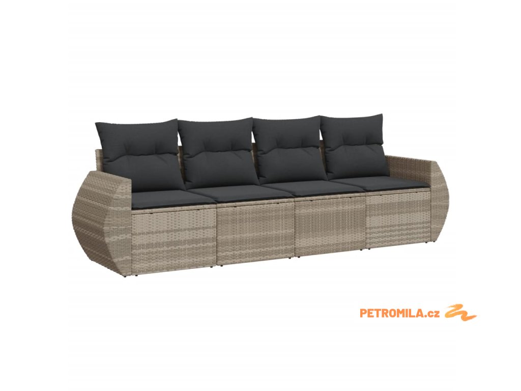 4dílná zahradní sedací souprava a podušky světle šedá polyratan