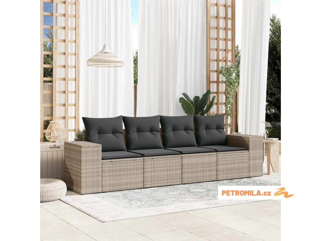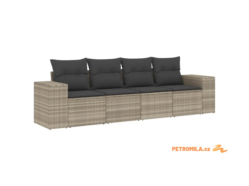 4dílná zahradní sedací souprava a podušky světle šedá polyratan