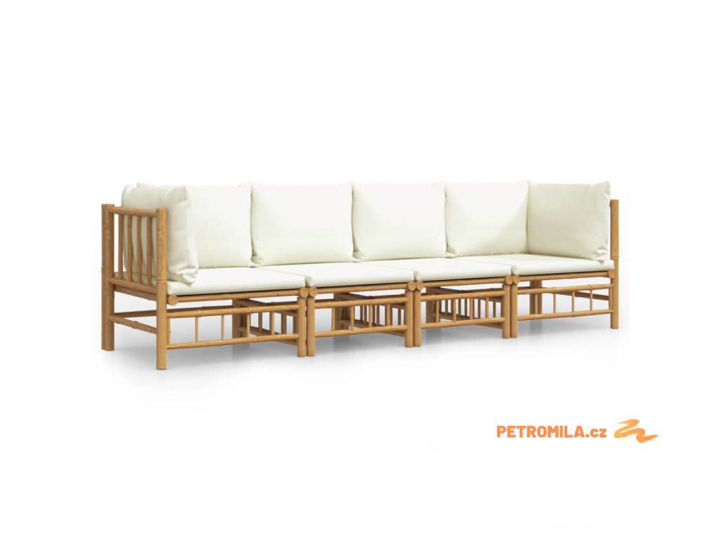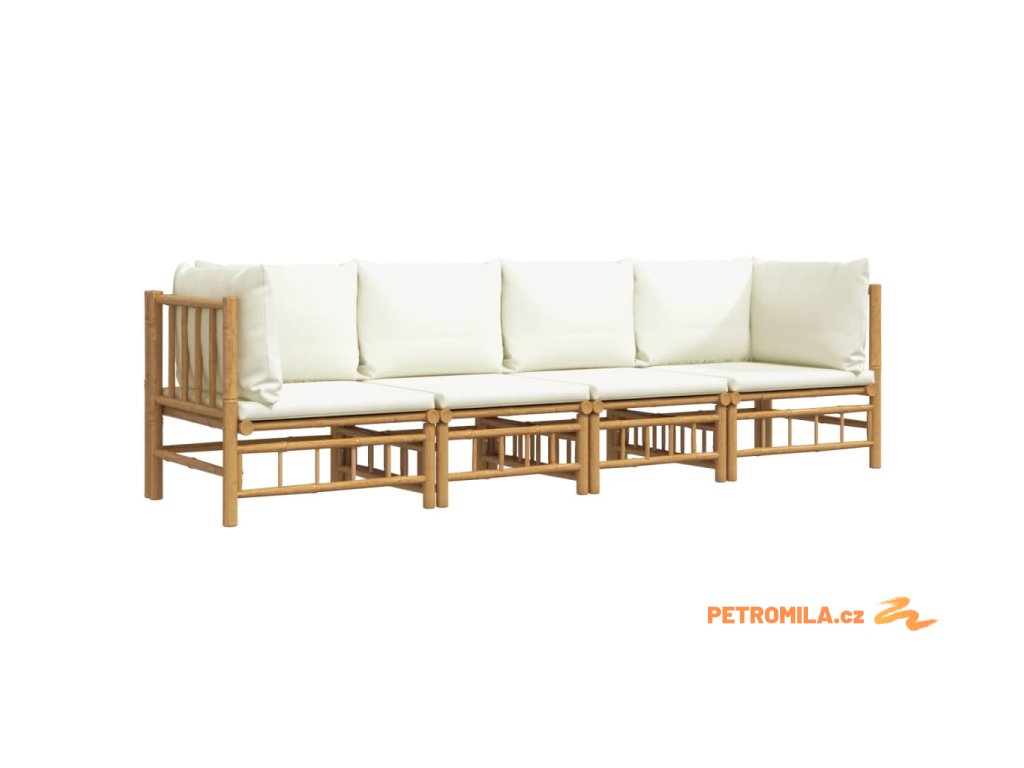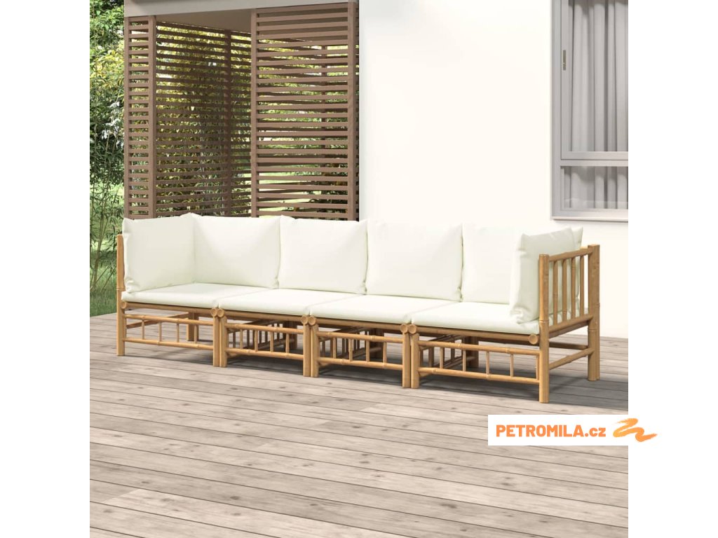 4dílná zahradní sedací souprava krémově bílé podušky bambus