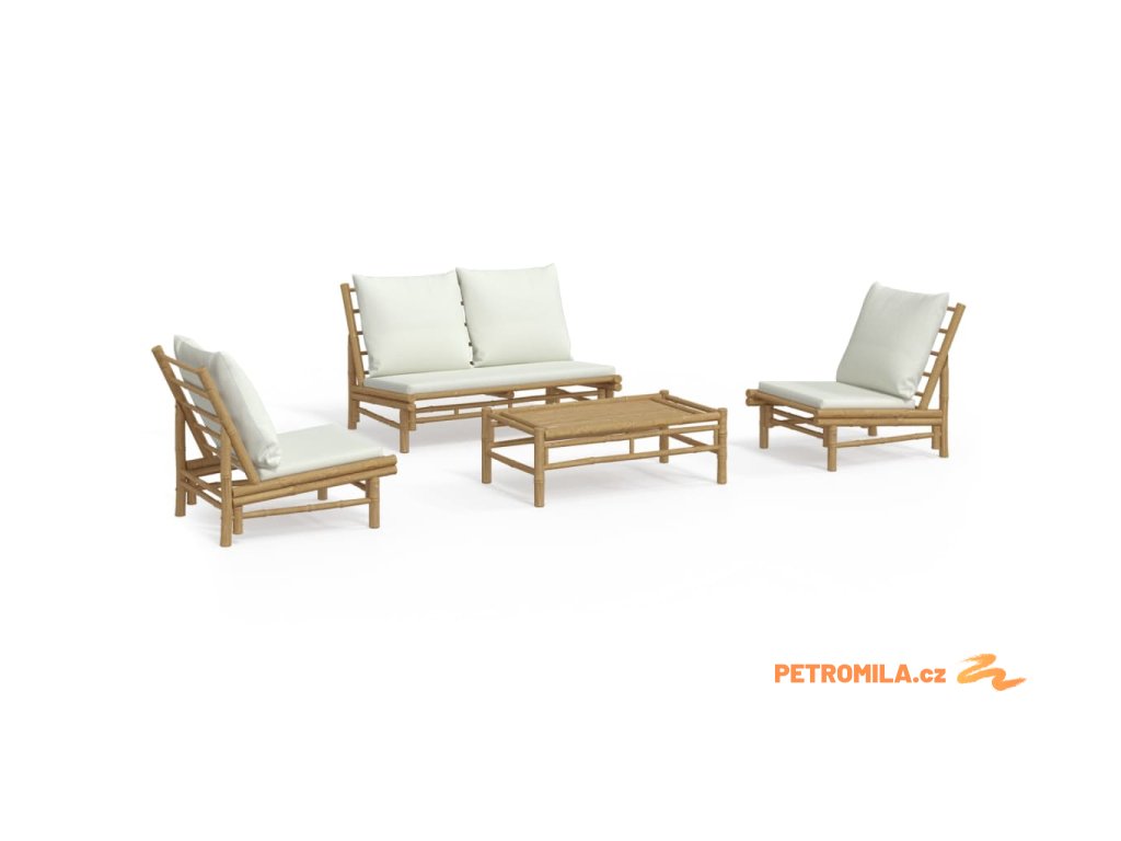 4dílná zahradní sedací souprava krémově bílé podušky bambus