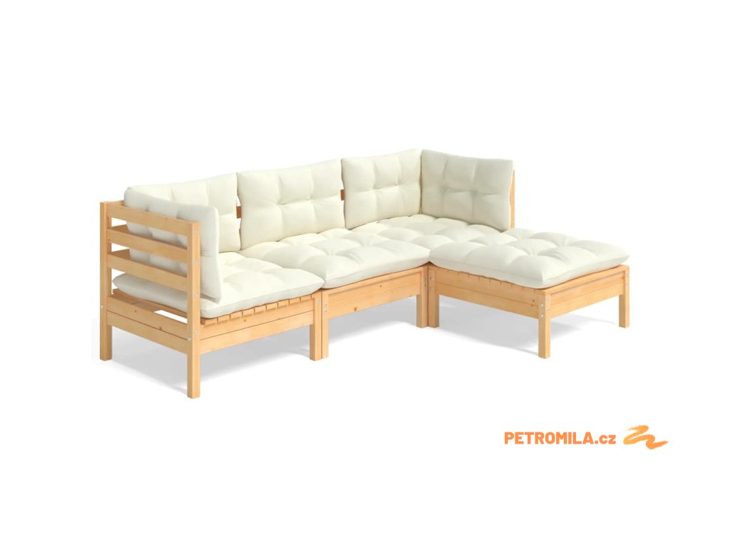 4dílná zahradní sedací souprava s krémovými poduškami borovice