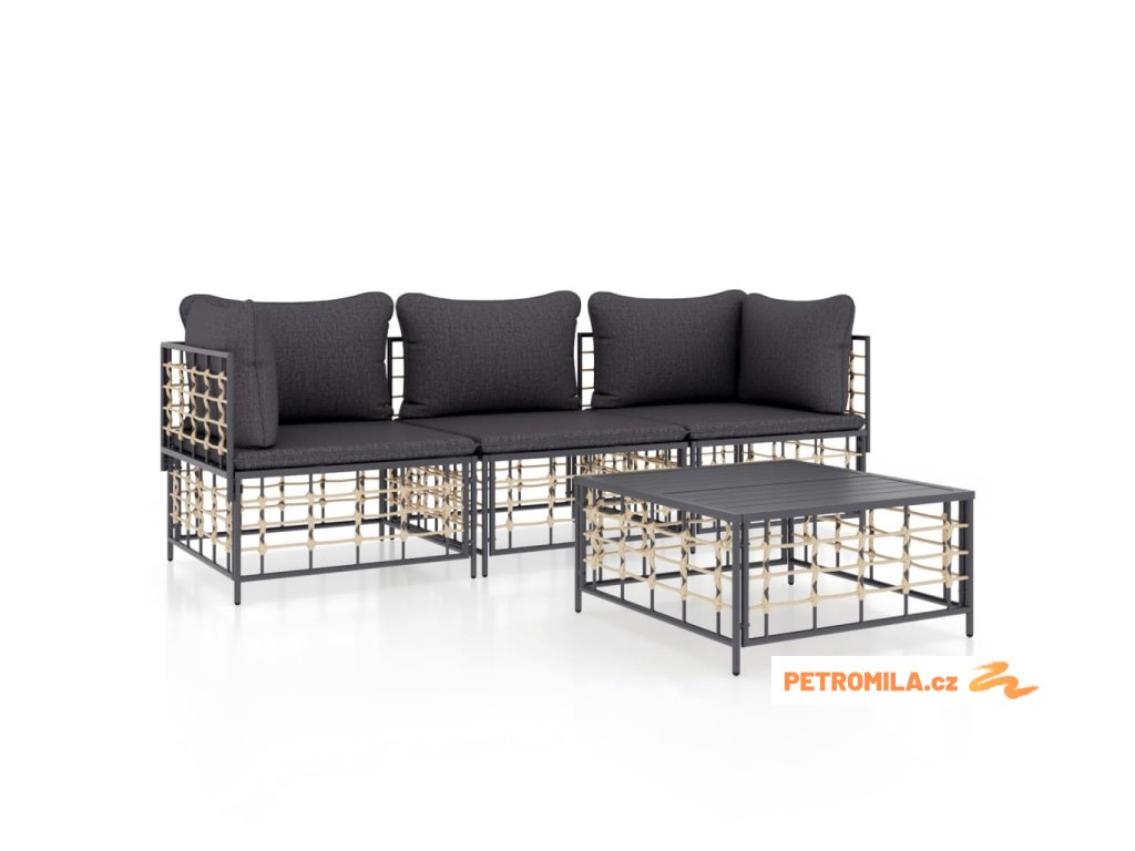 4dílná zahradní sedací souprava s poduškami antracit polyratan