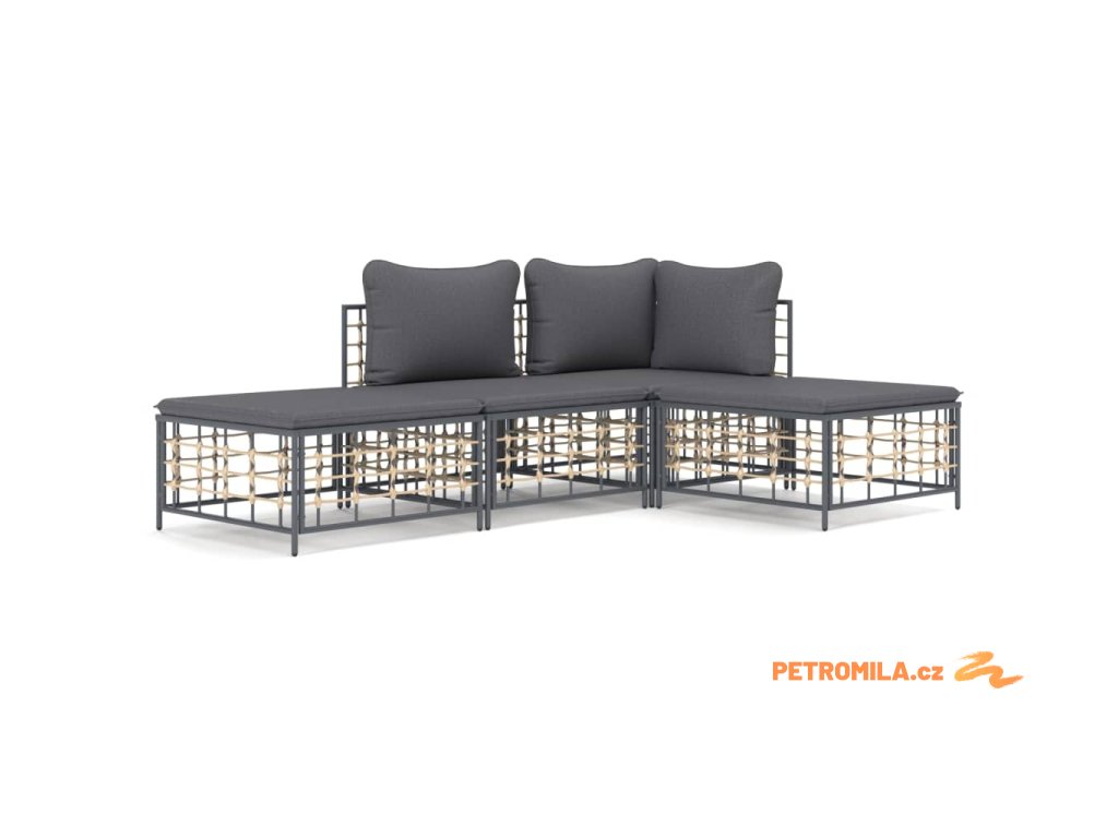 4dílná zahradní sedací souprava s poduškami antracit polyratan