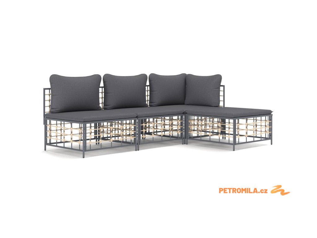 4dílná zahradní sedací souprava s poduškami antracit polyratan