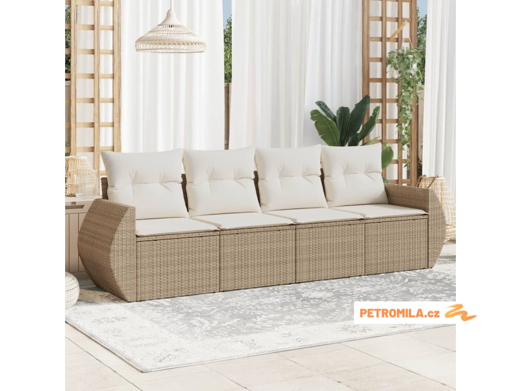 4dílná zahradní sedací souprava s poduškami béžová polyratan