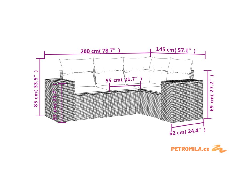- 4x poduška na sedák s odnímatelným a pratelným potahem