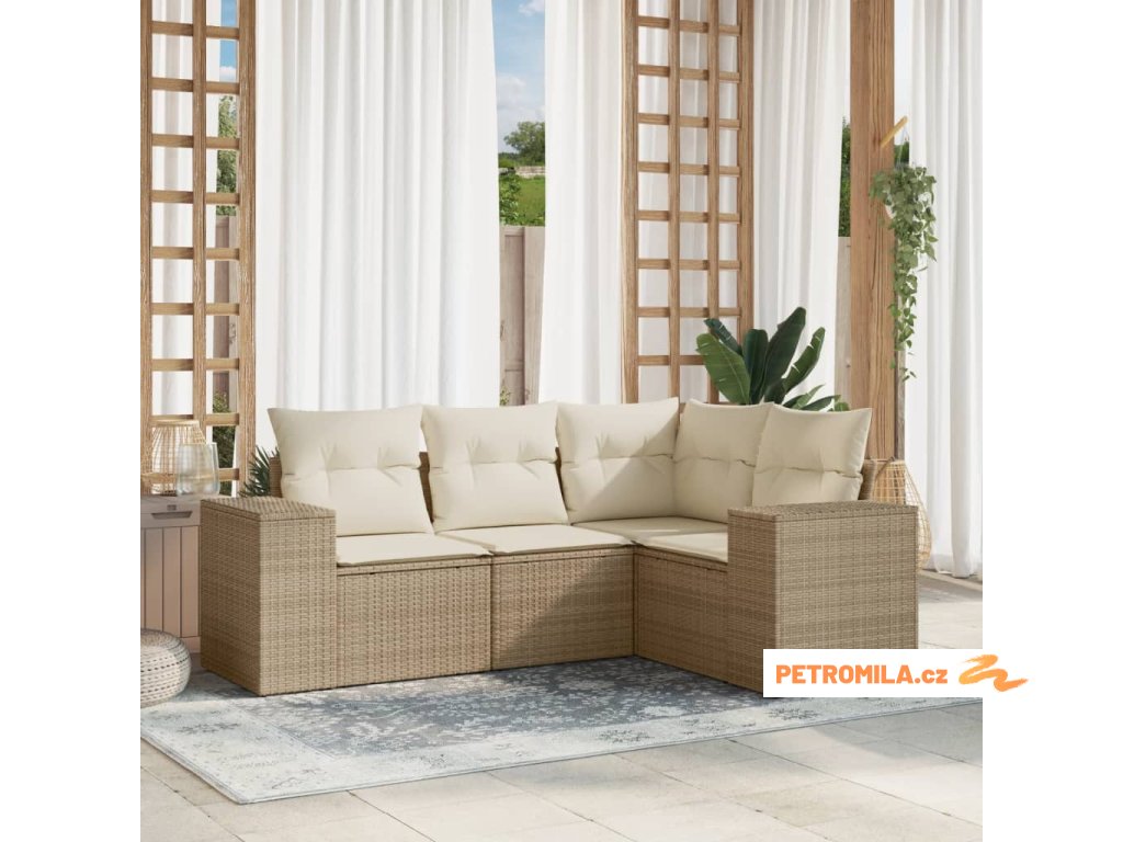4dílná zahradní sedací souprava s poduškami béžová polyratan
