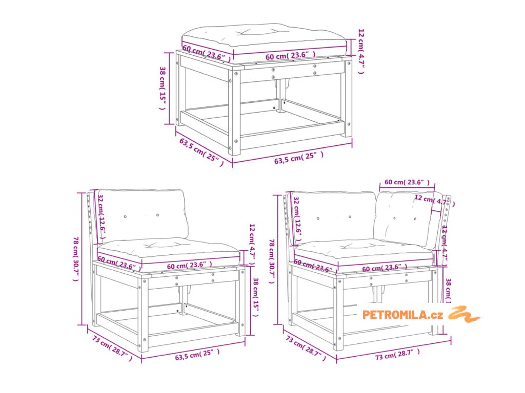 - Rozměry podušky na sedák: 60 x 60 x 12 cm (Š x H x T)
