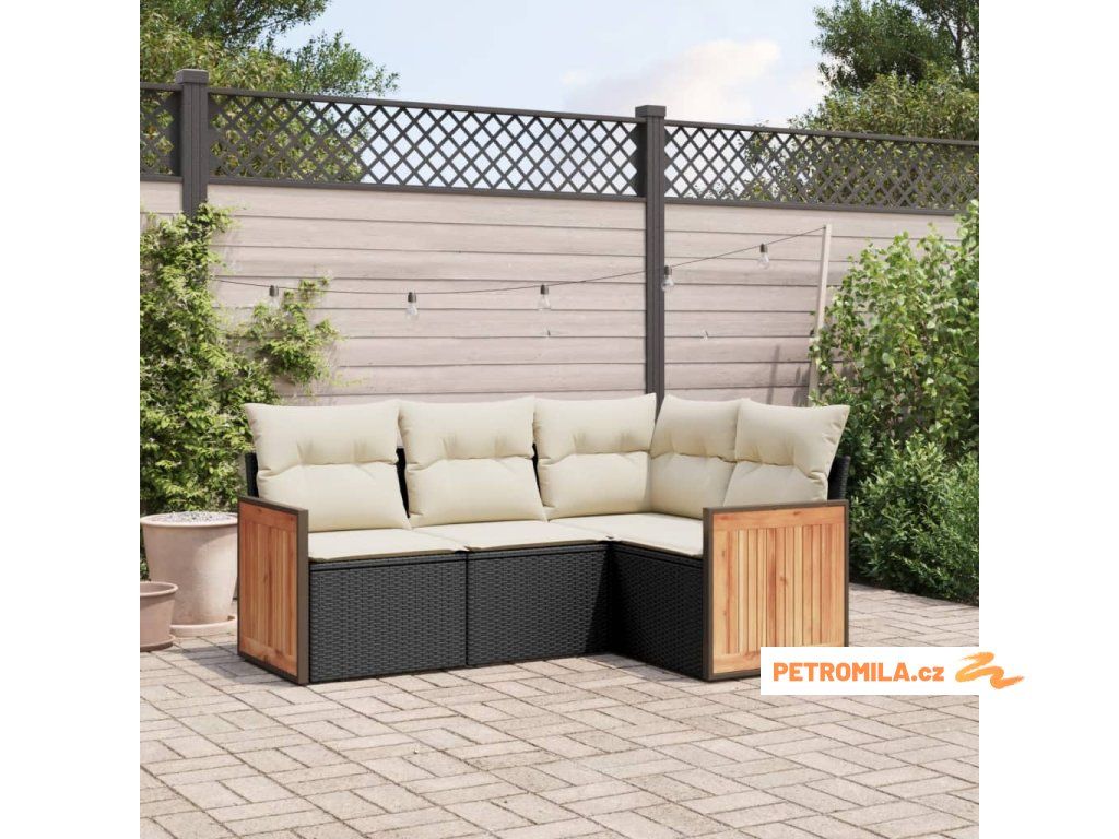4dílná zahradní sedací souprava s poduškami černá polyratan