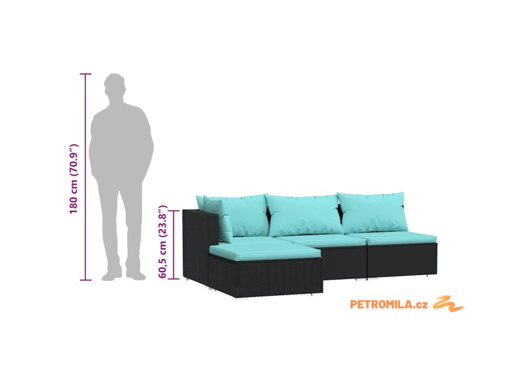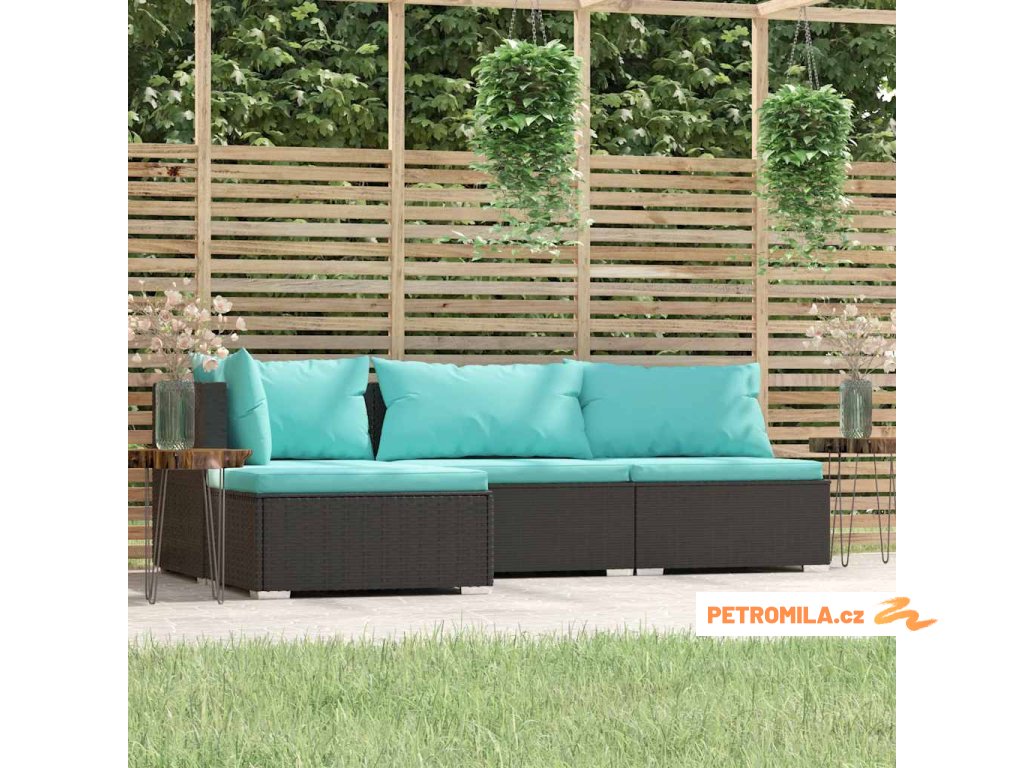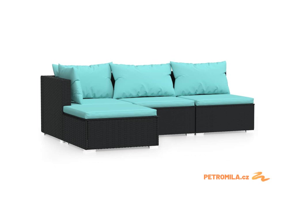 4dílná zahradní sedací souprava s poduškami černá polyratan